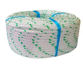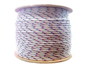 PIE CORDEL 3/8¨X300´ POLIPROPILENO TRENZADO, BLANCO, ROJO, AZUL 16 HEBRAS