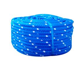 ROLLO CORDEL 3/8¨X98´ POLYPROPILENO TRENZADO, AZUL, BLANCO 16 HEBRAS