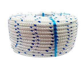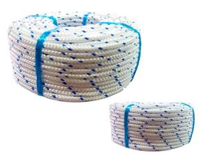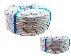 ROLLO CORDEL 1/2¨X98´ POLYPROPILENO TRENZADO, BLANCO, AZUL 16 HEBRAS