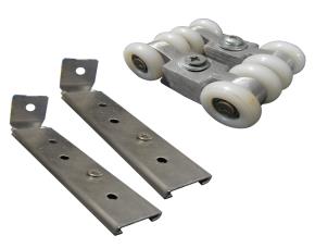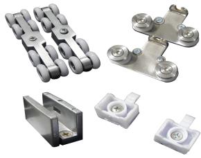 JGO DE 8 RODOS NYLON P/RIEL PJ-C013 C/PLACA Y TORNILLO DE ACERO INOX.CEPILLADO 304 P/VIDRIO DE 8-12M