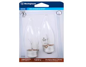 PQ DE 2 BOMBILLOS INCANDESCENTE TIPO CANDELABRA E26 40W/110V - TRANSPARENTE