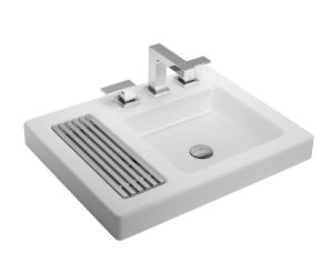 LAVAMANOS D/SOBREPONER QUADRATA C/JABONERA Y REJILLA 475X605MM BLANCO/CROMADO