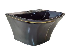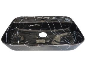 LAVAMANOS DE CERAMICA CENTURY RECTANGULAR DE SOBREPONER 500X400X130 NEGRO MARMOLEADO BRILLANTE