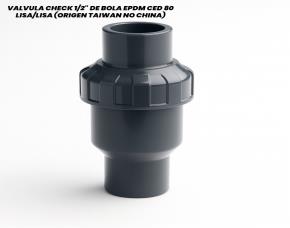 VALVULA CHECK 1/2" DE BOLA EPDM CED 80 LISA/LISA (ORIGEN TAIWAN NO CHINA)