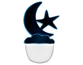 LAMPARA DE NOCHE LED AZUL PANTALLA LUNA/ESTRELLA 0.5W-120V, 60Hz