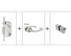 KIT CERRADURA EMBUTIR 50MM 4BOLTS C/MANIJA ROMA C/CILINDRO DOBLE SS