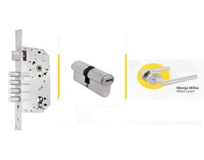 KIT CERRADURA EMBUTIR 4 BULONES C/MANIJA MILAN C/CILINDRO SENCILLO SS