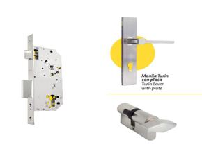 KIT CERRADURA EMBUTIR 50MM C/MANIJA TURIN C/CILINDRO SENCILLO SS