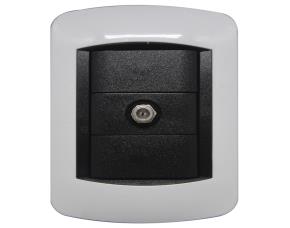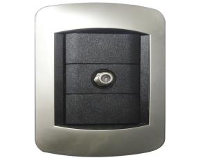 TOMA JACK COAXIAL SENCILLO PARA TELEVISION CON MARCO DE PLACA Y TORNILLOS, PLATA (10-37)