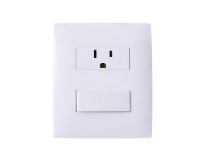 INTERRUPTOR CON TOMA Y PLACA 10A-15A/125-250V POLARIZADO, BLANCO, LINEA 100