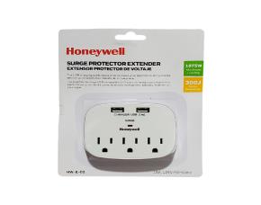 REGLETA PROTECTOR CORRIENTE 3 SALIDAS/2 USB BLANCO, 15A/125V/300 JOULES, HONEYWELL