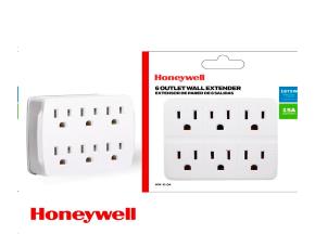 REGLETA PROTECTOR DE CORRIENTE 6 SALIDAS CONTRA SOBRETENSIONES, BLANCO, 15A/125V/1875W, HONEYWELL