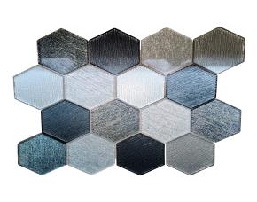 UNIDAD PLIEGO DE MOSAICO DE VIDRIO HEXAGONAL NEGRO/PLATA 30X26CM