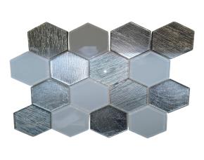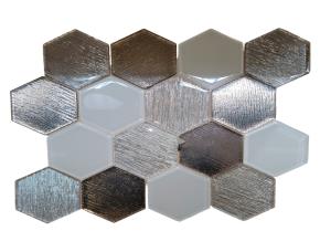 UNIDAD PLIEGO DE MOSAICO DE VIDRIO HEXAGONAL PLATA/BLANCO 30X26CM