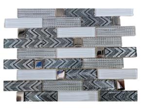 PIEZA PLIEGO DE MOSAICO DE VIDRIO GRIS/PIEDRA BLANCA 30X33.5CM