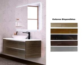 JGO. MUEBLE P/BAÑO WENGUE 2 GAVETAS CON REPIZA, LAVAMANOS Y ESPEJO