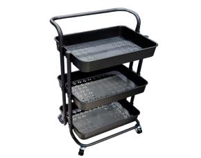 CARRITO 3 NIVELES C/AGARRADERA Y RODOS, 17X13 3/8X33 1/2" (43X34X85CM) TUBO 16MM, NEGRO