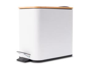 BASURERO 5L RECTANGULAR METALICO CON TAPA DE BAMBOO Y PEDAL, BLANCO