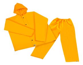 CAPOTE 2 PZS "EXTRA GRANDE" PANTALON Y CAMISA CON CAPUCHA SOLDADA, TELA VINIPELE AMARILLO CON FORRO