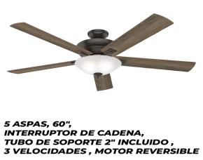 VENTILADOR DE TECHO REGALIAII DE 60"" CON LAMPARA 5 ASPAS ACABADO MATTE INT/EXT