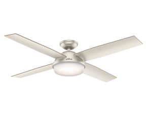 VENTILADOR DE TECHO DEMPSEY 52" NIQUEL MATE 4 ASPAS CON LUZ, EXTERIOR, MOTOR REVERSIBLE
