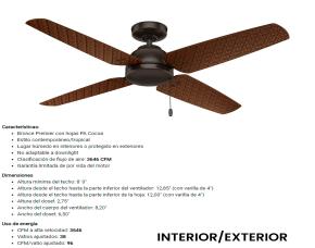VENTILADOR DE TECHO SUNNYVALE 52" BRONCE 4 ASPAS COCOA PARA INTERIOR/EXTERIOR