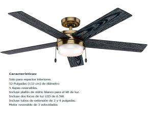 VENTILADOR DE TECHO 54" ANTERO NEGRO MATE 5 ASPAS CON LUZ LED, MOTOR Y ASPAS REVERSIBLES
