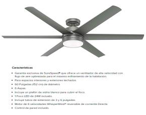 VENTILADOR DE TECHO 60" SOLARIA PLATEADO MATE OUTDOOR DAMP 6 ASPAS CON LUZ LED, EXTERIOR, MOTOR REVE