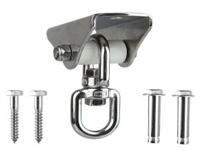 GANCHO GIRATORIO ACERO INOX 304 PARA COLUMPIOS ETC, CAP.450KG CONTIENE 4 ACCESORIOS DE ANCLAJE