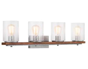LAMPARA D/TOCADOR D/BAÑO PLATEADA C/DETALLES EN MADERA CASTAÑO C/4LUCES C/VIDRIO E/BURBUJA DE 33-1/