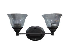 LAMPARA D/TOCADOR D/TRANSICION CAFE OSCURO C/2LUCES 14.25PULG C/PANTALLA D/VIDRIO TRANSPARENTE
