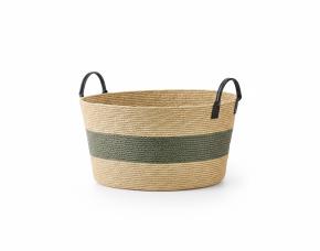 CESTA PARA ROPA IMITACION DE MIMBRE 18X12" 2TONOS CON HAGARRADERA DE PIEL SINTETICA