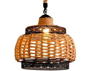 LAMPARA COLG.HIERRO FORJ.PINTADO EN NEGRO C/ROPO/SISAL,E27X1 BOMB.LED,NO INCL.11"LARGOX20"ALTO
