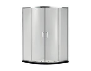 PUERTA DE BAÑO CURVA 1MX1MX1.95M VIDRIO TEMPLADO, CON 2 PUERTAS CORREDIZAS, ACABADO ALUMINIO(2 BULTO