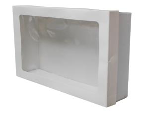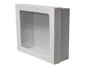 BANDEJA 10"X6"X3" CARTON BLANCO C/TAPADERA Y VENTANA PVC