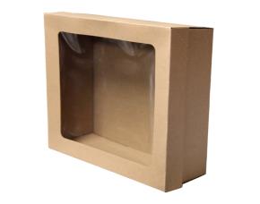 BANDEJA 10"X10"X3" (100/CAJA) DE CARTON KRAFT C/TAPADERA Y VENTANA PVC