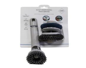 CEPILLO MANUAL PARA PLATOS C/DISPENSADR DE JABON INCLUYE DOS CABEZALES