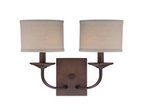 LAMPARA DE PARED CON CORTINA DE LINO BEIGE 2 LUCES JACKSON BRONCE