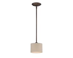 LAMPARA DE TECHO MINI COLGANTE CON CORTINA DE LINO BEIGE 1 LUZ JACKSON BRONCE