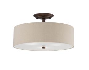 LAMPARA DE TECHO EMPOTRADA CON CORTINA DE LINO CARBON CON VIDRIO BLANCO 3 LUCES JACKSON PELTRE CEPIL