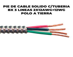 PIE DE CABLE SOLIDO C/TUBERIA BX 3 LINEAS 2X12AWG+12WG POLO A TIERRA