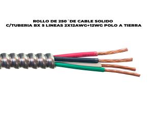 ROLLO DE 250´DE CABLE SOLIDO C/TUBERIA BX 5 LINEAS 2X12AWG+12WG POLO A TIERRA