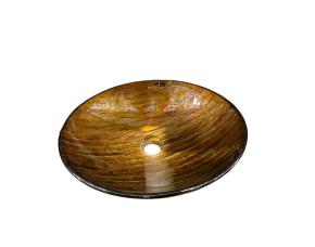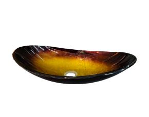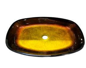 LAVAMANOS DE VIDRIO CENTURY OVALADO DE SOBREPONER 540X370X170X12 CAFE/AMARILLO