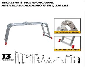 ESCALERA 8 MULTIFUNCIONAL ARTICULADA ALUMINIO 13 EN 1, 330 LBS
