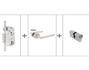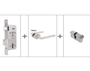 KIT CERRADURA EMBUTIR 50MM C/MANIJA MILAN C/CILINDRO DOBLE SS
