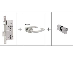 KIT CERRADURA EMBUTIR 50MM 4BOLTS C/MANIJA ROMA C/CILINDRO DOBLE SS