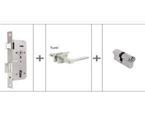 KIT CERRADURA 50MM C/MANIJA TURIN C/CILINDRO DOBLE SS