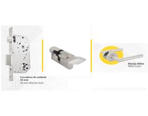 KIT CERRADURA EMBUTIR 50MM C/MANIJA MILAN C/CILINDRO SENCILLO SS