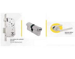 KIT CERRADURA EMBUTIR 50MM C/MANIJA MILAN C/CILINDRO SENCILLO SS