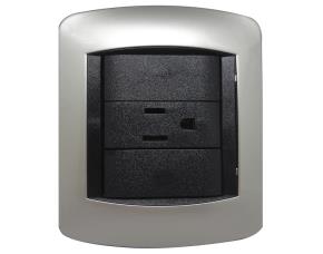 TOMACORRIENTE DOBLE DE CONEXIÓN A TIERRA CON PLACA Y TORNILLOS 15AMP, 125V COLOR PLATA (10-6)